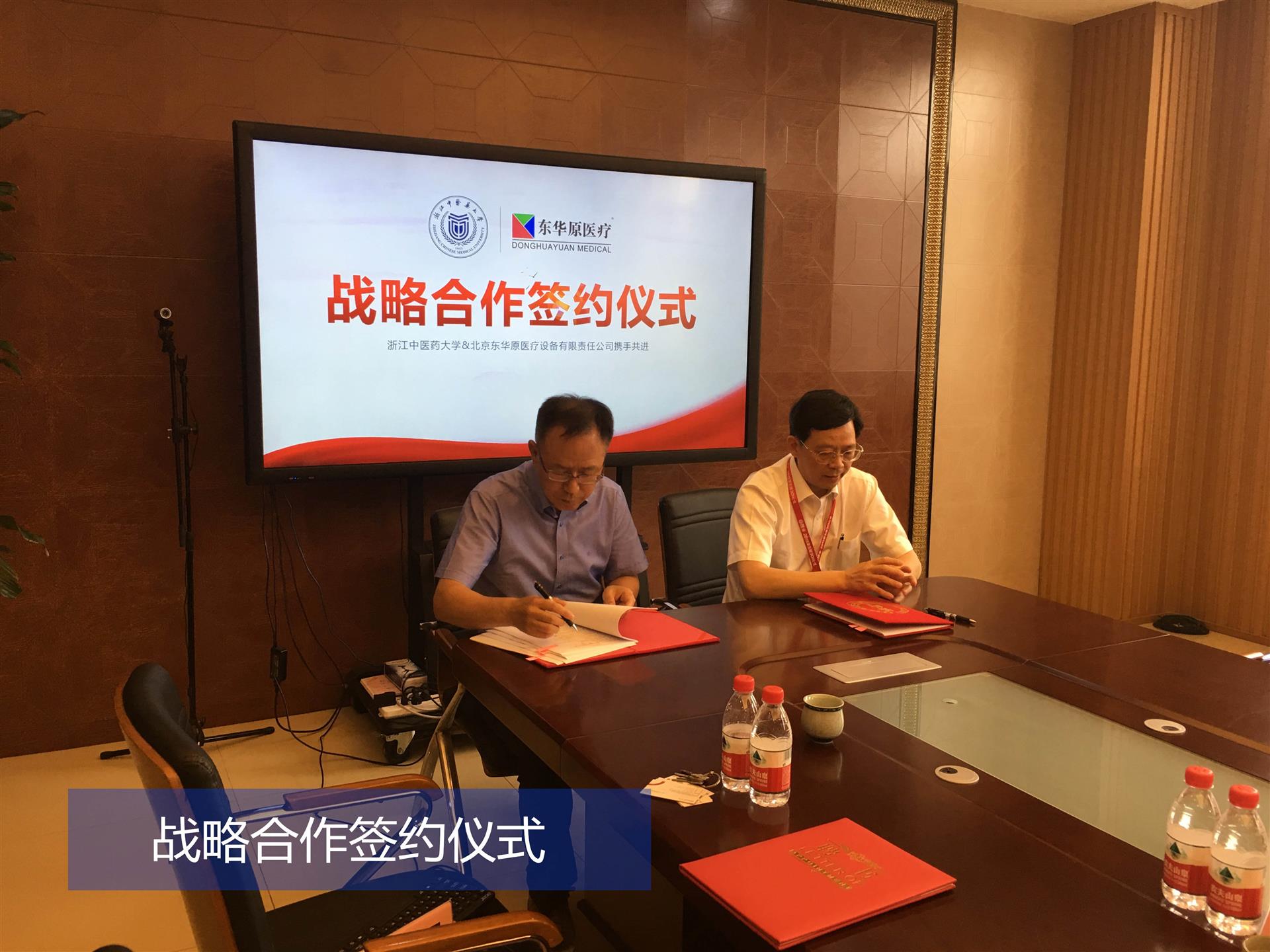 2018年5月26日,北京東華原醫(yī)療設(shè)備有限責(zé)任公司與浙江中醫(yī)藥大學(xué)“產(chǎn)—學(xué)—研”合作戰(zhàn)略協(xié)議簽約儀式在京舉行。東華原醫(yī)療董事長(zhǎng)南龍、總經(jīng)理姜黎濱,浙江中醫(yī)藥大學(xué)副校長(zhǎng)郭清等領(lǐng)導(dǎo)出席了本次簽約儀式。