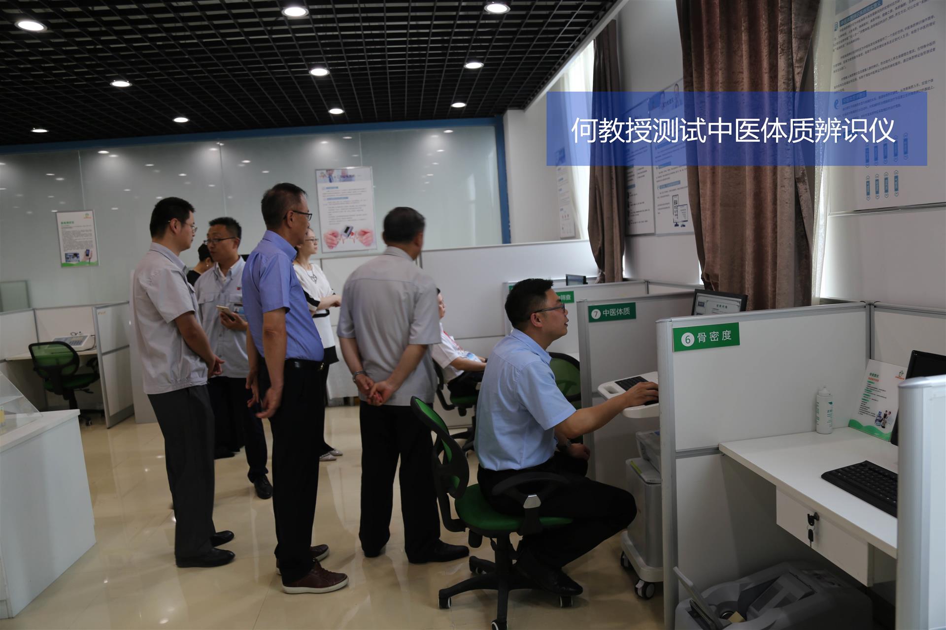 簽約儀式前,南龍帶領(lǐng)嘉賓們參觀東華原現(xiàn)代化煎藥中心及健康小屋。郭清親自體驗(yàn)了血壓儀及精神壓力分析儀等體檢設(shè)備,并對(duì)東華原的產(chǎn)品表示高度認(rèn)同。