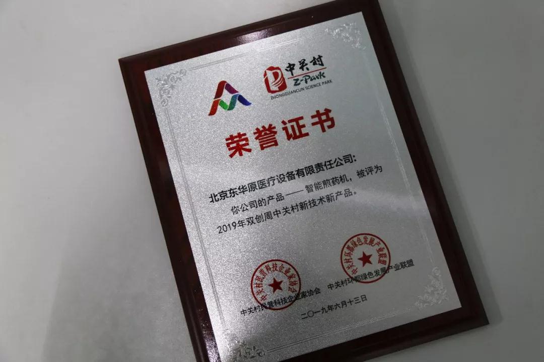 2019年5月東華原醫(yī)療的全自動煎藥生產(chǎn)線被評為“2018年度政府采購中關(guān)村新技術(shù)新產(chǎn)品——首臺(套)重大技術(shù)裝備示范項目”。與此同時,在本次雙創(chuàng)周活動中,東華原醫(yī)療的智能煎藥機(jī)又獲得了”2019年雙創(chuàng)周中關(guān)村新技術(shù)新產(chǎn)品”榮譽(yù)稱號。可以說是東華原醫(yī)療在雙創(chuàng)周上雙豐收!