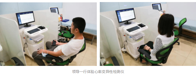領(lǐng)導一行還親自體驗了心率變異性檢測儀(精神壓力分析儀),并認真聽取了檢測報告的解讀,對心率變異性檢測儀報告中的壓力分析、心臟分析、自主神經(jīng)系統(tǒng)檢測等的數(shù)據(jù)進行了交流溝通。
