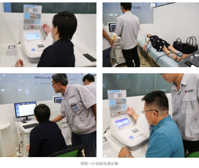 在參觀之余,各位領(lǐng)導(dǎo)還親自體驗(yàn)了醫(yī)用電子血壓儀、精神壓力分析儀、動(dòng)脈硬化檢測(cè)儀等健康體檢設(shè)備,肯定了東華原多年來的全系列健康體檢設(shè)備布局,獲得了快速、便捷、專業(yè)、舒適的檢測(cè)體驗(yàn)。