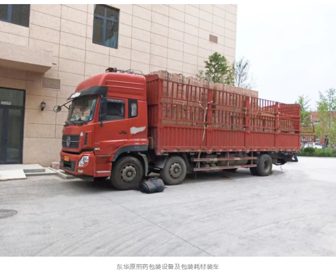 時(shí)間緊,任務(wù)重,分管海南區(qū)域的廣州分公司迅速行動(dòng)起來,明確東華原總部現(xiàn)有機(jī)器數(shù)量和型號(hào),溝通客戶,同時(shí)備齊合同,辦理疫情期間特殊通行證件,最終12組,42臺(tái)煎藥機(jī)、12臺(tái)包裝機(jī)和100套包裝耗材在第二天就緊急啟程,成功發(fā)往了海口。