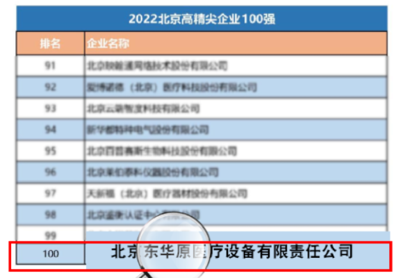 點贊 | 東華原醫(yī)療榮登“2022北京高精尖企業(yè)100強”榜單