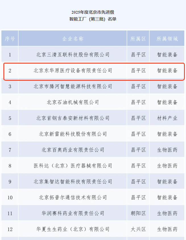 喜訊!東華原入選北京市先進(jìn)級智能工廠名單