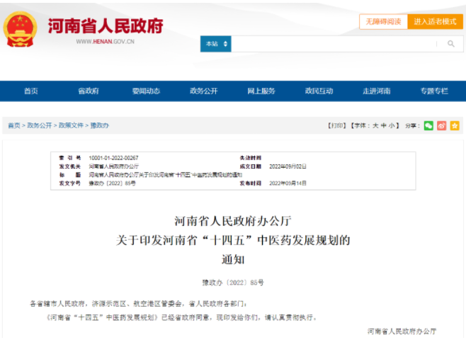 河南省“十四五”中醫(yī)藥發(fā)展規(guī)劃