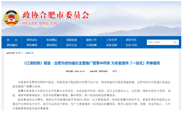 《江淮時(shí)報(bào)》:合肥市政協(xié)建議全面推廣智慧中藥房