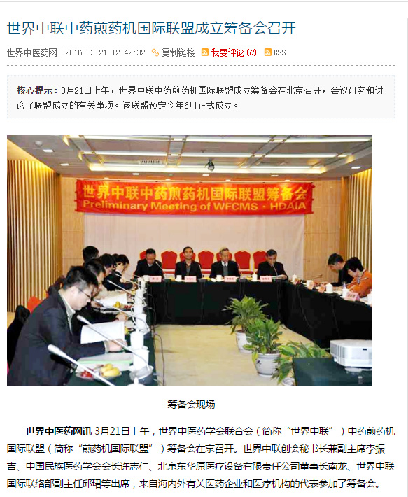 世界中聯(lián)中藥煎藥機國際聯(lián)盟成立籌備會召開