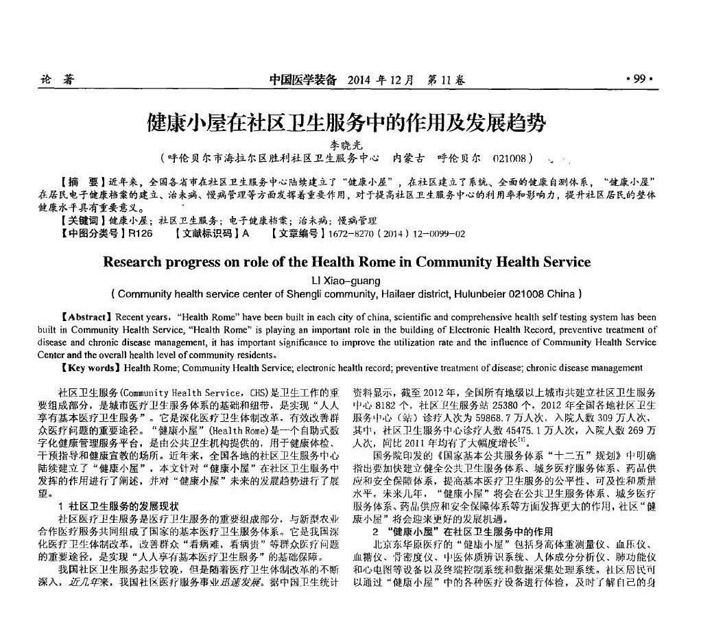健康小屋在社區(qū)衛(wèi)生服務(wù)中的作用及發(fā)展趨勢