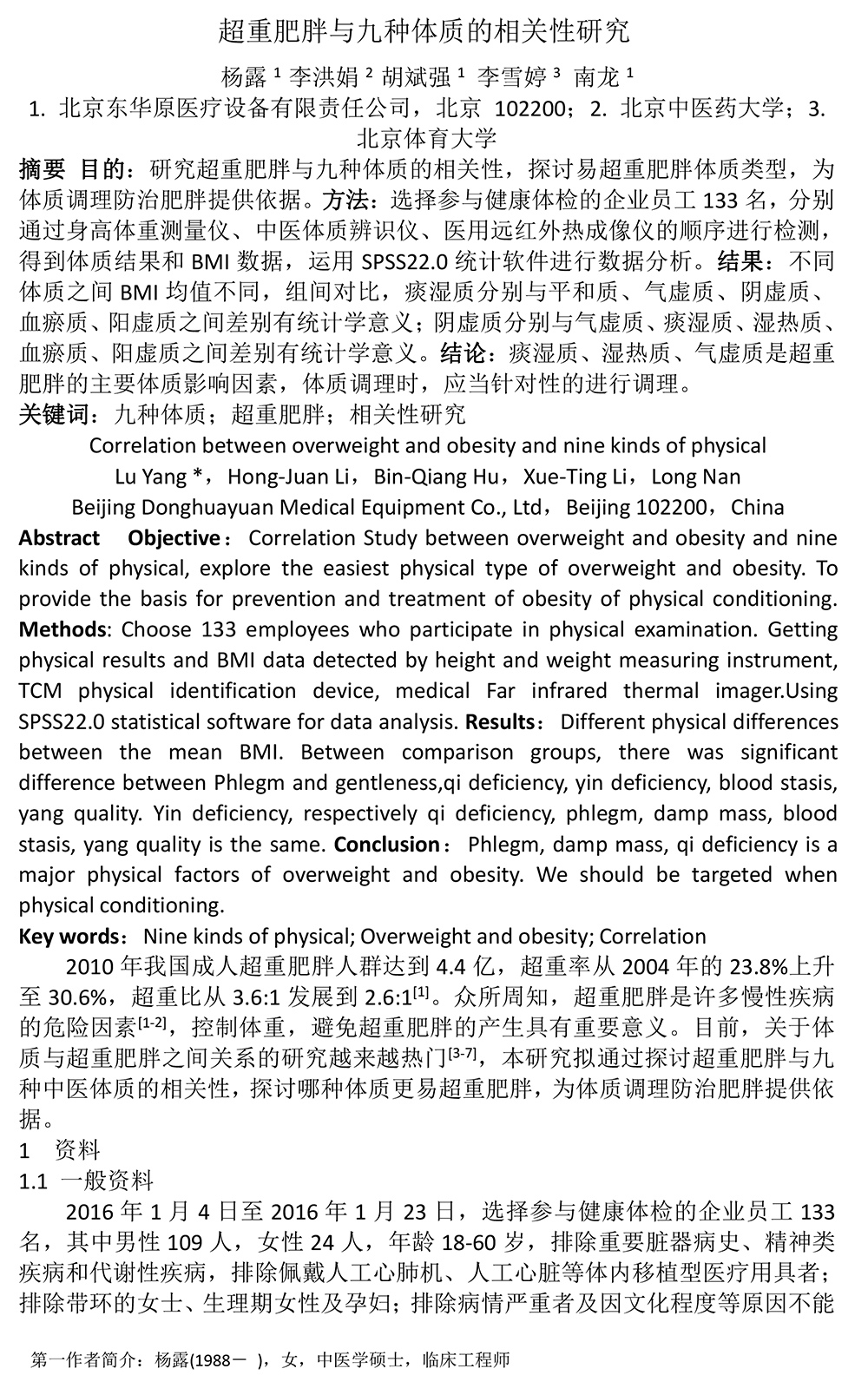 超重肥胖與九種體質(zhì)的相關(guān)性研究