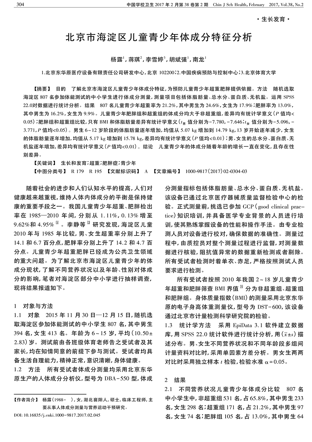 6_15歲北京市海淀區(qū)少兒體成分生長發(fā)育特征分析