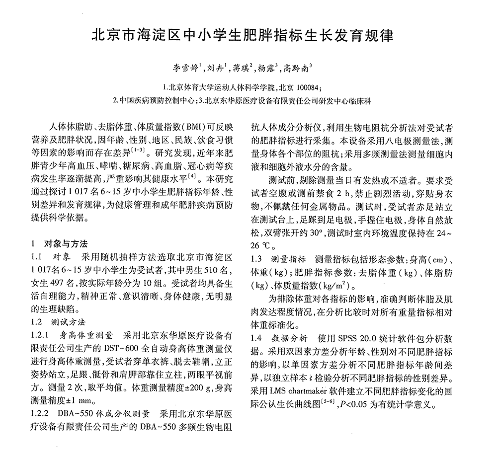 6_15歲北京市海淀區(qū)少兒體成分生長發(fā)育特征分析