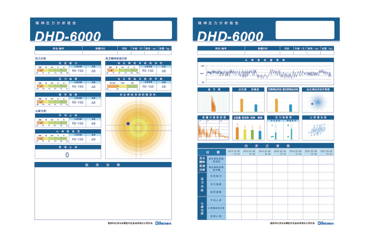 - 心率變異性檢測儀DHD-6000通過對心率變異(HRV)的分析,測量自主神經(jīng)系統(tǒng)的交感和副交感神經(jīng)功能,準確分析由于壓力引起的自主神經(jīng)系統(tǒng)失去平衡所導致多種功能紊亂,用于評估心理健康狀況,可作為普通人群精神心理類疾病及心理類疾病所引起的相關(guān)疾病的早期預警指標,達到早期發(fā)現(xiàn),早期治愈的目的。